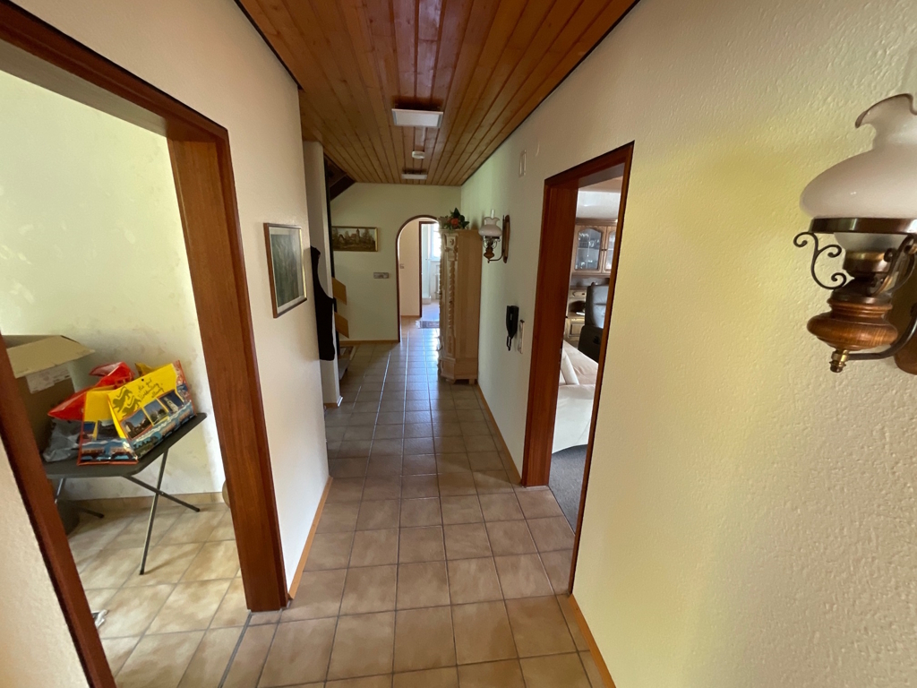 Die Wohnung befindet sich im EG und DG eines Zweifamilienhauses mit insgesamt 5,5 Zimmer , Küche, Bad/WC, Gäste-WC, großer sonniger Balkon mit unverbaubaren Panoramablick, Wohnfläche ca. 163 qm.In den letzten Jahren wurde das Wohnhaus grundlegend laufend renoviert und befindet sich im besten Zustand. Ab 2000 Erneuerung sämtlicher Fenster aus Kunststoff und Doppelisolierverglasung. Die Bäder wurden ebenfalls ab 2000 renoviert. 2005 wurde die Dachdeckung mit Dämmung erneuert.