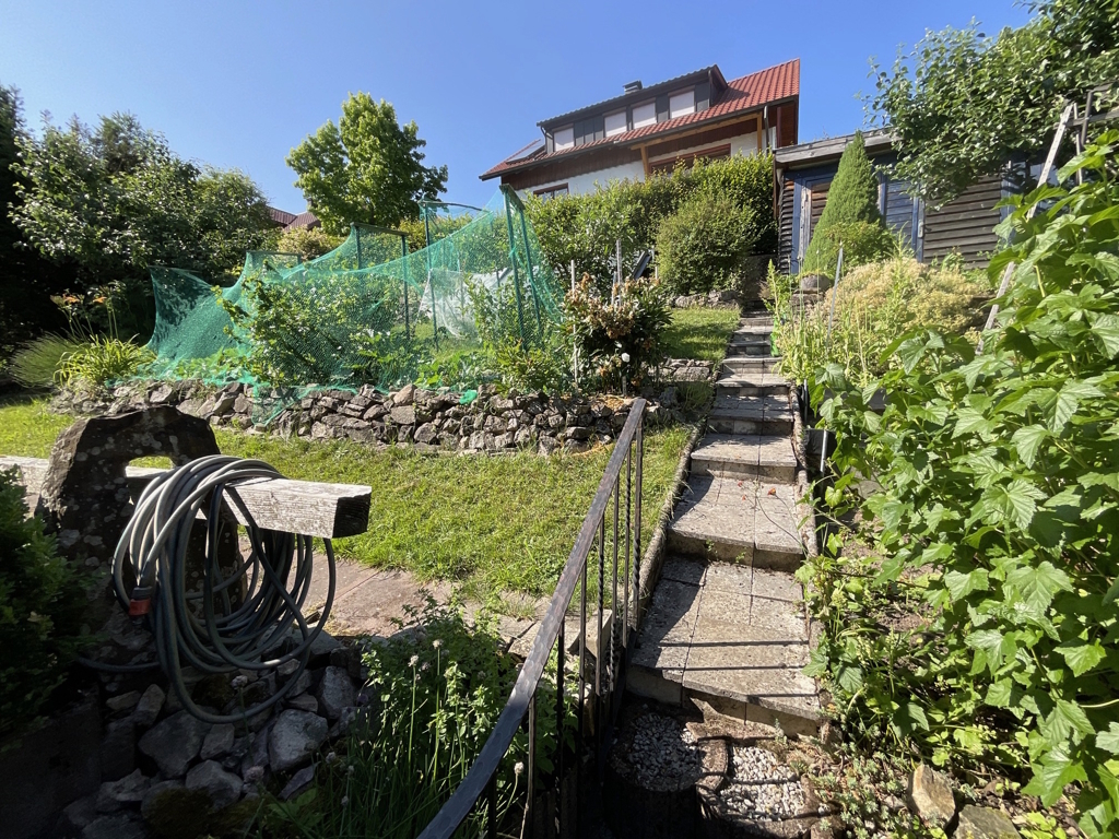 Der Gartenbereich des Grundstückes ist liebevoll angelegt mit Gewächshaus, verschiedenen Terrassen.